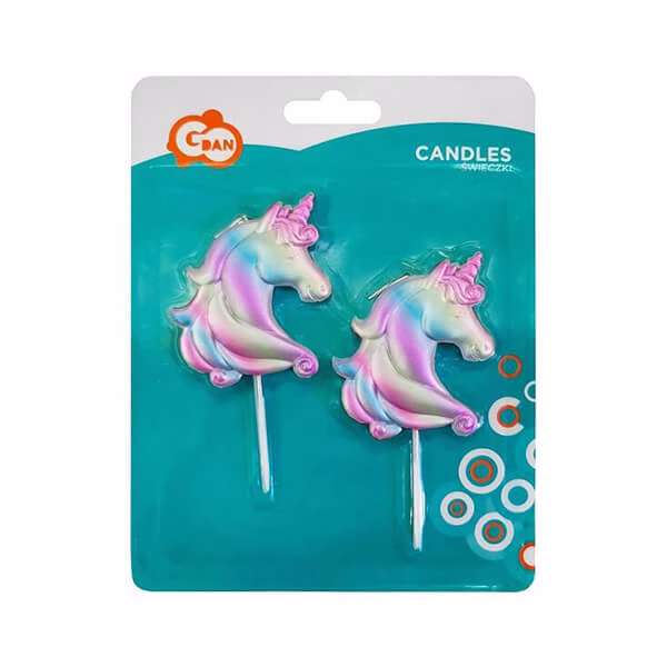 СВЕЩИ ЗА ТОРТА ВЪВ ФОРМАТА НА ЕДНОРОГ 2 бр.
