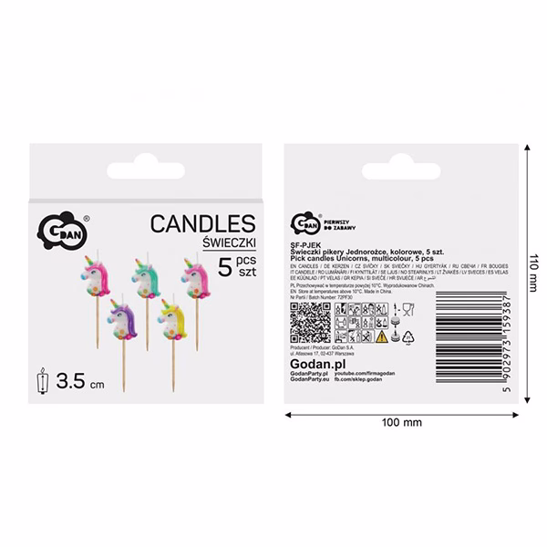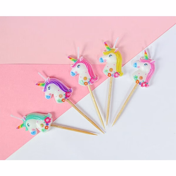 Свещи за торта Unicorns, многоцветни, 5 броя