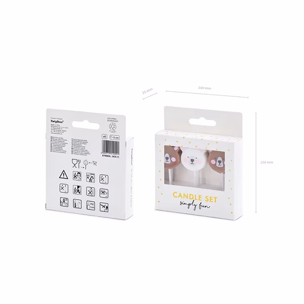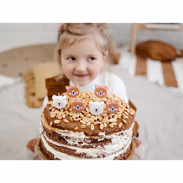 Детски свещи за торта, рожден ден със сладки Мечета, комбинация от цветове, височина прибл. 3 см., 6 броя в опаковка.