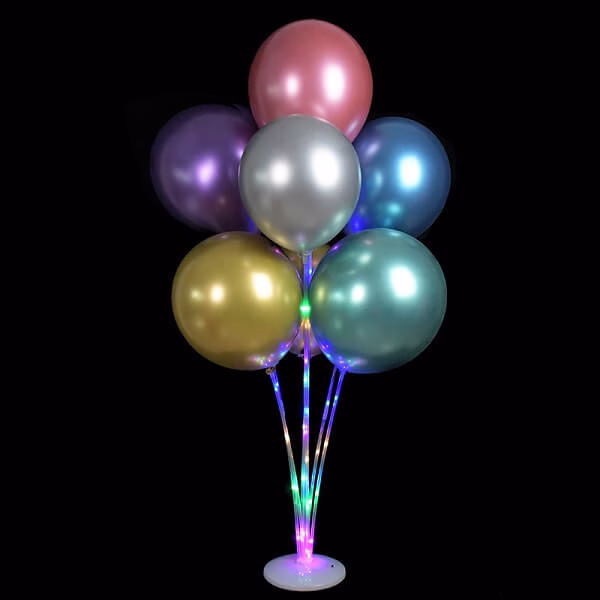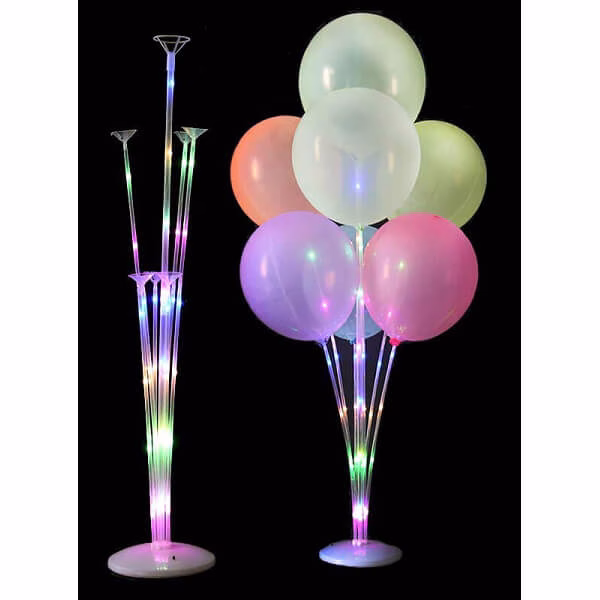 Светеща стойка с цветни Led светлини за букет от 7 балона с поставка и пръчки.