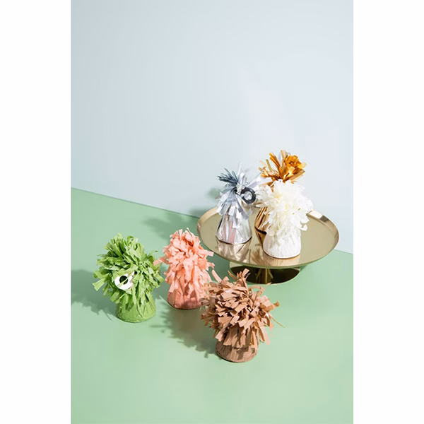Не позволявайте на пълните с хелий балони да отлетят, а ги оставете да се носят във въздуха. Например, за използване по време на следния парти повод(а): рожден ден, детско парти, годишнина. Тази тежест за балон е опакована в хартия и има ресни отгоре. Идеално пасва на нашата колекция от фолиеви балони (форми и цифри) с ултра матово покритие.