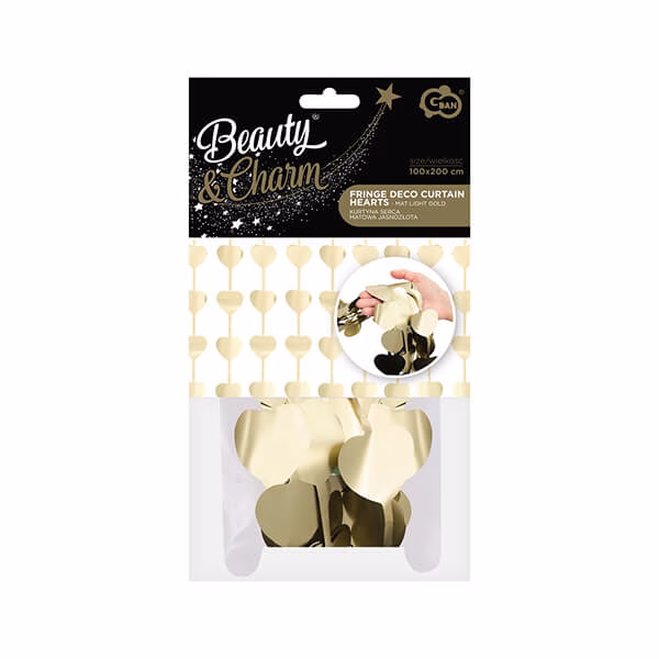 Завеса сърца, B&C Hearts, мат, светло злато, 100×200 см